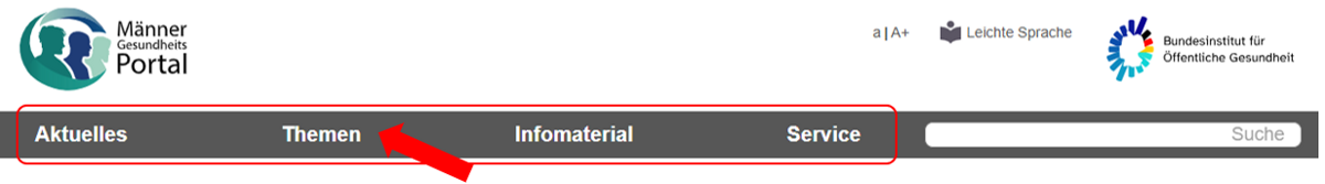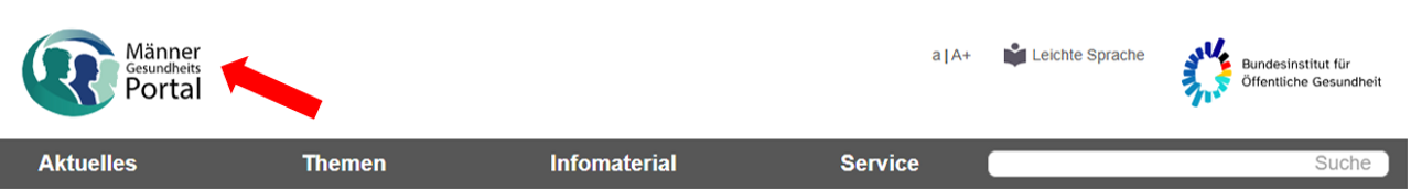 Ganz oben links auf jeder Seite ist das Zeichen der Internet-Seite www.maennergesundheitsportal.de.